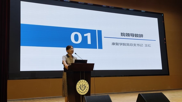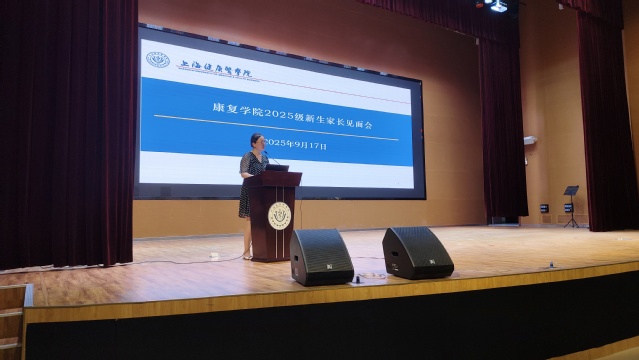 王红围绕学院发展历程、专业国际认证成果及教育综合优化举措展开介绍,特别提及AI技术在康复领域的赋能应用。她对新生提出殷切期望,鼓励同学们在大学期间既要不懈努力、追求进步,不断锻炼提升自我能力,也要注重品德修养,成长为全面发展的高素质人才;同时强调家校协同的重要性,期待与家长保持紧密沟通。