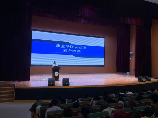 随后,康复学院实践教学中心主任李静为同学们进行实验室安全教育。实验技能是科研能力的基础,但安全永远放在首位。希望通过专业培训和实践演练,确保每位学生都能掌握必要的安全知识,遵守实验室规则,预防意外情况。