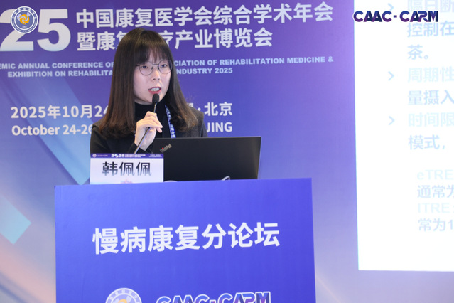 论坛学术氛围浓厚,成果丰硕。作为中国康复医学会慢病康复专委会副主任委员兼秘书长,郭琪教授带来了题为《肌少症的精准化诊断和运动处方的实践》的精彩报告,深入探讨了肌少症这一老年常见综合征的精准评估方法与个性化运动干预策略,为临床实践提供了重要指导。韩佩佩教授作为专委会秘书及青年工作组副组长,以《间歇性禁食与肌少症》为题,系统梳理了不同间歇性禁食模式的特点,并阐释了其在改善肌少症方面的潜在作用与机制,为营养干预提供了新视角。王丽岩教授作为专委会科普工作组副组长,分享了《认知障碍的数字评估和数字疗法》的前沿进展,展示了数字化技术在认知障碍早期识别、干预与管理中的广阔应用前景,勾勒出智慧康复的未来图景。