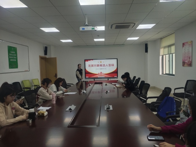 答辩开始前,支部书记胡冰首先介绍了答辩的要求和注意细则,随后18名入党积极分子分为线上和线下分别进行发展对象的答辩,他们进行了详细的自我介绍,深刻阐释了对党的认识,坚定理想信念,端正入党动机,表明了自己的决心。支委老师就入党积极分子们的答辩提出切实的问题和中肯的建议,督促大家学好党史,不断端正入党动机,发挥先锋模范作用,争取早日入党。