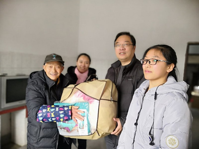访问首站是近2小时车程的金山区张堰镇。18级康复工程班的杨孟婷同学因行动不便留守学校,学院特安排专车将她送回家。杨孟婷的爷爷看到学院老师非常感动,蒋晓明副书记亲自代表学校把羊毛毯送到她爷爷手上,把学院(校)的关心与温暖带给学生和家庭。杨孟婷非常高兴地带辅导员老师参观自己的小屋,表示一定刻苦学习,报答长辈和学校对自己的关爱。