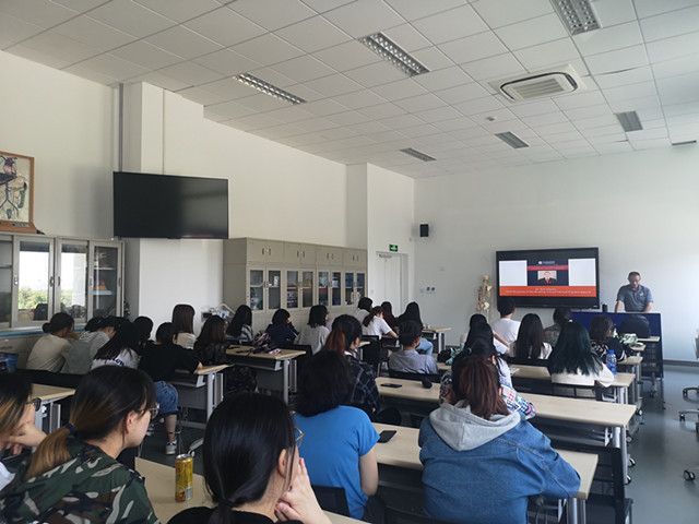 当天下午,陈旸博士在康复实训中心向16级康复治疗专业的学生介绍了美国杜肯大学研究生项目。陈旸博士从专业教学、衣食住行等方面向在座学生介绍了美国杜肯大学的风貌,让大家更加全面的了解美国杜肯大学的学习氛围。