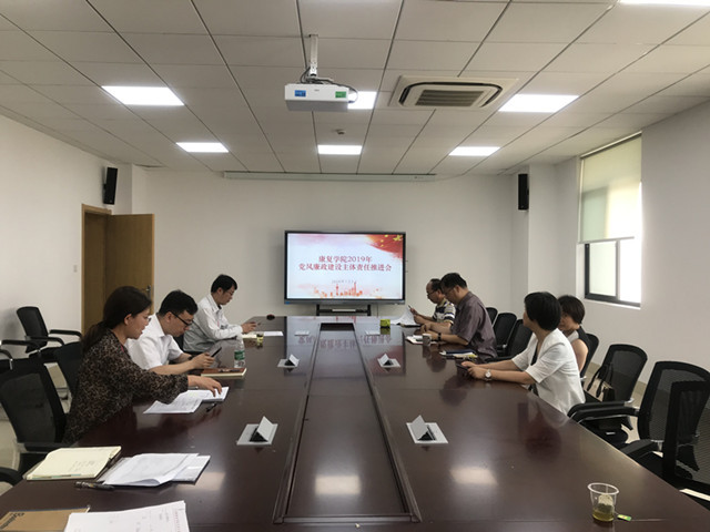 7月5日下午,康复学院在308会议室召开了2019年党风廉政建设主体责任工作推进会。校纪检监察处副处长、纪委办副主任施奇出席会议,学院全体党政班子成员及党务工作者参加会议。会议由学院党总支书记王红主持。