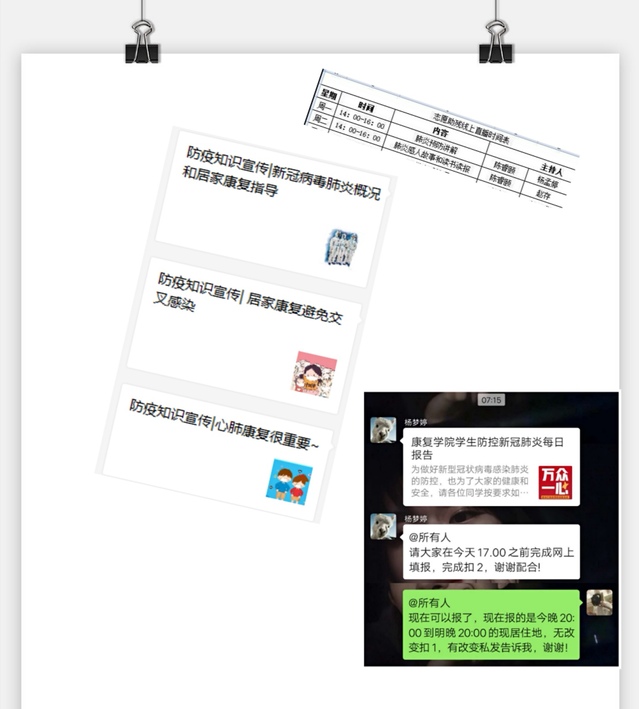 增强信心:入党积极分子袁婷婷、王嘉雯、刘博泽、陈睿颐、孟飞勇于发声、积极发声、正确发声,主动及时地向身边家人、同学讲清疫情防控科普知识,结合学校、学院公众号的宣传,讲好发生在疫情防控阻击战中的“逆行者”故事,为身边人注入抗击疫情的“强心剂”。
