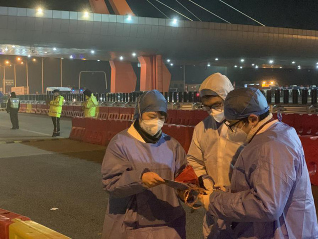戴维目前就职于上海市第五康复医院,自1月23日起,他积极投身疫情工作,主动报名枫泾道口的驻守任务,负责复检通道。