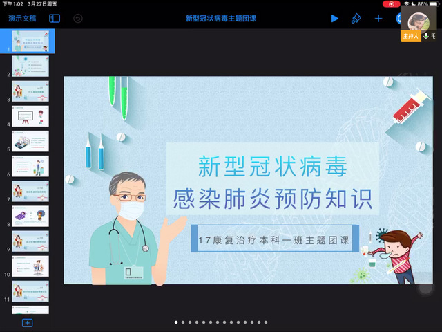 本次团课各班通过腾讯会议线上直播的方式开展,向同学们讲解新型冠状病毒肺炎的知识和预防措施等,帮助同学们更深刻的了解疫情,增强同学们的防范意识。