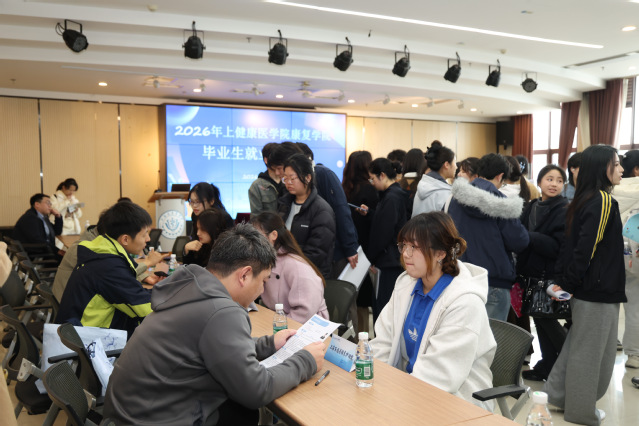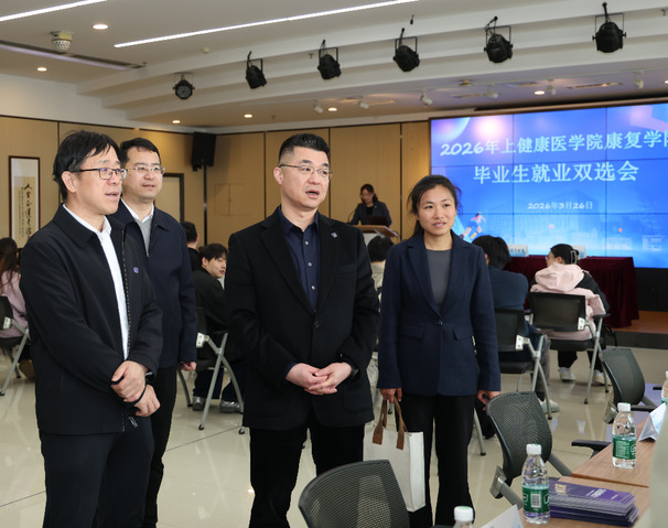 3月26日上午,上海健康医学院康复学院在南苑7号楼举办2026届毕业生春季就业双选会暨就业协议签约仪式。校长吴韬,党委副书记、副校长王庆华来到现场指导,深入了解用人单位招聘需求和毕业生就业情况,并见证了学院两位毕业生与上海德济医院的现场签约。
