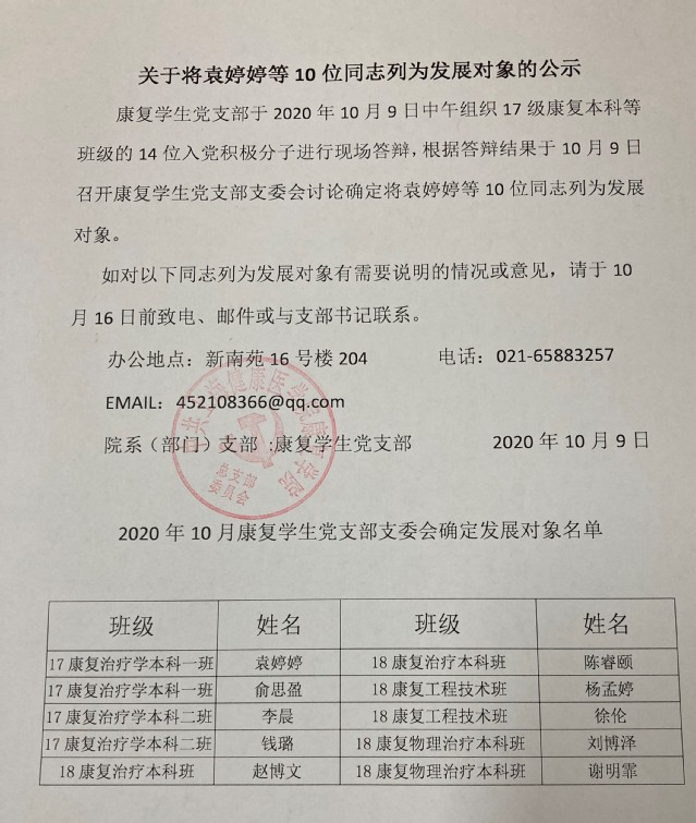 关于将袁婷婷等10位同志列为发展对象的公示