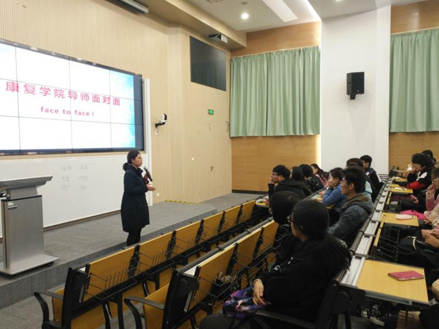 继康复学院第一次全体教师与新同学面对面交流活动后,11月14日中午12:00,由学院团委学生会联合又举办了第二次交流活动。此次face to face交流活动得到了学院领导的大力支持,主持学院工作的王红副院长亲临现场,与近100余名同学互动,就同学们普遍感兴趣的海外游学、考研、专升本、就业、创新创业等话题进行了交流。