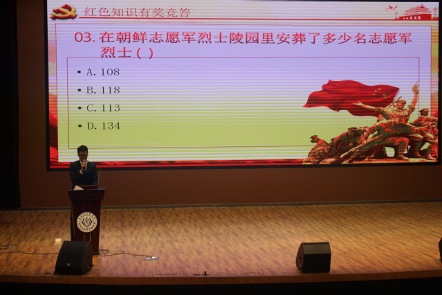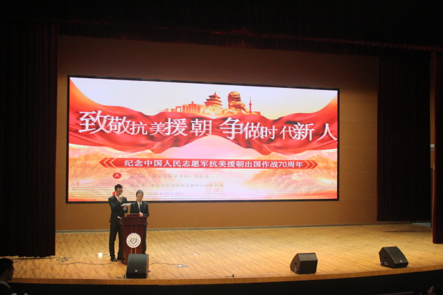 康复学生党支部为弘扬爱国主义精神,更好地开展学生学习“四史”活动,在易班平台开展纪念抗美援朝战争70周年有奖问答活动之后,11月18日晚5点在新南苑800人报告厅举行了线下“致敬抗美援朝 争做时代新人”纪念抗美援朝战争70周年纪念活动。