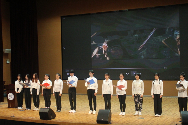 “人固有一死,或重于泰山,或轻于鸿毛,用之所趋异也。”英雄们固然是重于泰山的呀!怀着对英烈们的崇敬之心,同学们献上了一首深情的《我和我的祖国》,歌声朗朗,余音绕梁,久久不绝。