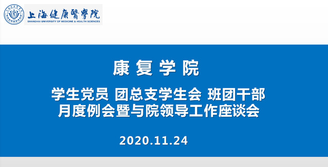 师生交流座谈会旨在落实大学生思想政治工作新要求,搭建教育管理服务平台,了解和解决学生在学习、工作和生活中存在的问题,广泛听取学生对学院工作的意见建议。同学们了解到疫情背景下学生相关的工作和部署,进一步明确了下一阶段学生工作的目标与重心,传达了学院对同学们的关心,起到良好的思政育人效果,希望同学们做好疫情防护的同时智育、德育两手抓,共同建设更好康复!(康复学院)