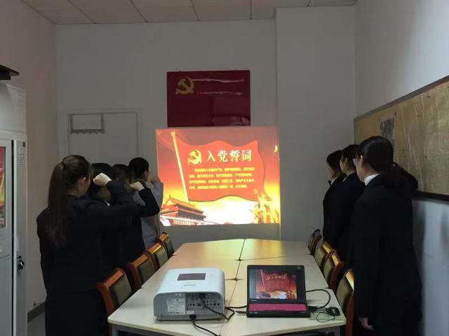 会议伊始,7位预备党员佩戴党徽,举起右手,面向鲜红的党旗进行庄严的宣誓,激昂的誓词抒发着每位预备党员对党忠诚的决心。这一庄严肃穆的时刻,定格在了每位预备党员的心中,时刻激励着他们不断奋发进取,牢记誓言,牢记使命,自觉担负起光荣的使命和责任。在场的每一位心中都深深烙印着十二句话、句句千钧;八十个字,字字入骨。通过宣誓仪式,预备党员接受了心灵的洗礼,坚定了理想信念,呈现出了良好的精神风貌。宣誓仪式结束后,预备党员们深有感触,依次发言,表示要恪守在党旗下的诺言,更加严格要求自己,时刻保持共产党员的先进性和先锋模范作用,努力使自己成为一名优秀的共产党员。最后,胡冰老师对7位预备党员提出了自己的期望,希望每一位预备党员都能够加强党的理论知识的学习,关心时事政治,关注榜样力量,不断提高党性修养,发挥党员的先进性,努力使自己成为一名有理想有抱负的优秀共产党员。