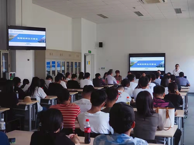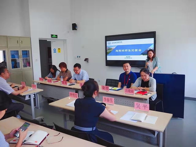 9月22日海南班师生见面在新南苑16号楼2楼心肺实训室召开,莅临本次见面会的海南卫生健康职业学院张梅校长、项目办主任叶绮霞、系主任李赫男,上海健康医学院产学合作处主任金亮、校学生工作部部长吕晓丽、教务处副处长蒋淑敏,康复学院党总支书记王红、院长郭琪、党总支常务副书记蒋晓明,以及学院教师代表。海南班20级高职康复治疗技术1班的49位全体同学出席本次师生见面会。