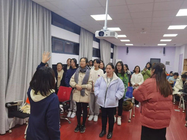 训练是艰苦的,在赛前的每一个晚上,都会听到50名同学嘹亮的歌声。一开始歌声停留在同学们个人艺术的交织阶段,有些散乱。随着训练的深入,在有合唱经验的学姐们的指导下,大家开始慢慢懂得如何用丹田之气驾驭高音,如何用胸腔与头腔的共鸣使声音更加集中,如何放松自己的嗓子让声音更加洪亮,渐渐地能从大家的歌声中感受到气势与力量。