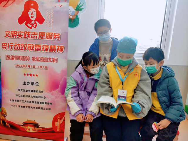作为此次雷锋活动的志愿者,为弘扬雷锋精神,在大华医院为附近儿童义诊的时候,我们为在等待区排队的儿童准备了雷锋叔叔的故事,和他们一起诵读,让小朋友们在字里行间感受这种乐于助人的精神。希望这次活动在他们的成长中留下一点点温馨。