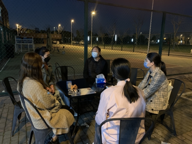 他充分发挥“领头羊”和战斗堡垒的作用,冲锋在前,靠前指挥,3月15日下午,封闭校园管理的第二天,蒋老师所在的小区刚解封,他心里挂念着康复358名在校同学和驻守老师们,马不停蹄往学校赶,一到校就直奔核酸检测现场,指导现场有条不紊地工作。顾不上收拾自己的临时宿舍,他召集所有辅导员线上开会,梳理最新疫情“战况”,高效分工合作,成立新南苑临时党支部,带领大家在关键时刻不要慌、听指挥、稳得住。到了晚上8点多,刚忙完手头的工作,进入新南苑12号宿舍楼,收到紧急通知,12号楼因疫情排查需要,临时封楼;“大家不要慌,先全部待在宿舍里,不要走动,配合工作”,他大声疾呼, 待警报解除、楼宇解封,他立即到男生宿舍看望并鼓励同学们。在校辅导员和学生们纷纷表示:有“大家长”在,心里好踏实!