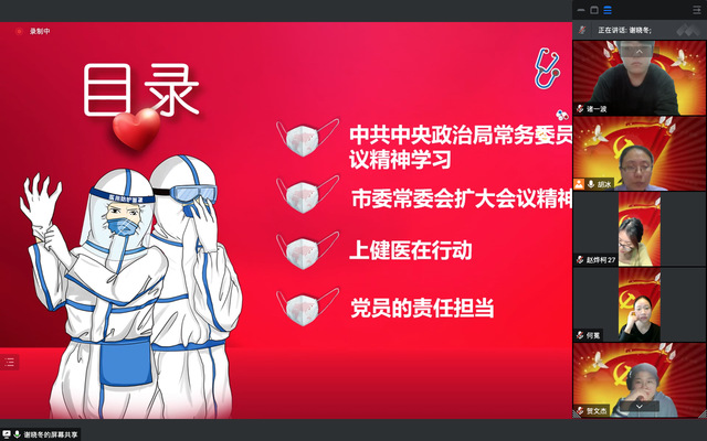 会议最后胡冰老师强调在疫情防控的关键时期,我们要统一思想,不能松懈,作为党员同志,在疫情防控保卫战中要看得到,站的出,做得到。我们要坚定信念,在党和国家的领导下,紧紧依靠人民群众,同舟共济,科学防治,精准施策,我们终将打赢大上海保卫战!(康复学院)