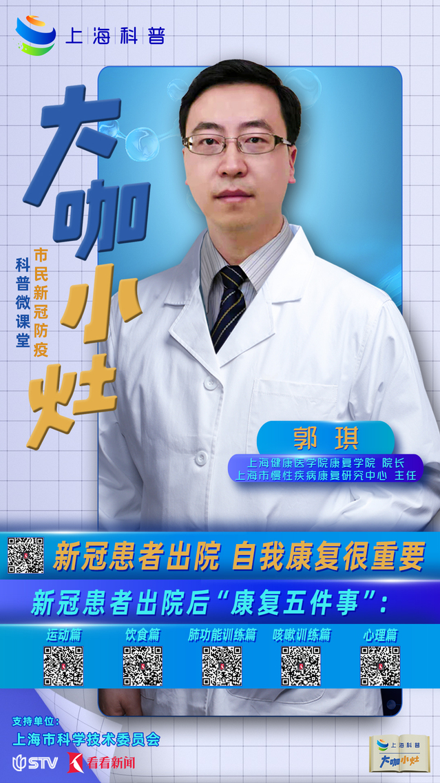 随着上海疫情防控朝着稳中向好的发展方向,大量新冠患者得到治愈,回到社区和家庭。那么新冠患者出院后后续的康复应注意什么?近日,康复学院院长郭琪受邀做客上视新闻综合频道《大咖小灶》栏目讲述新冠患者出院“康复五件事”。